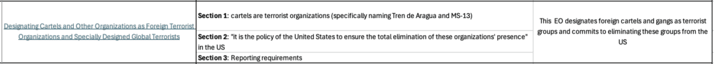 • DESIGNATING CARTELS AND OTHER ORGANIZATIONS AS FOREIGN TERRORIST ORGANIZATIONS AND SPECIALLY DESIGNATED GLOBAL TERRORISTS