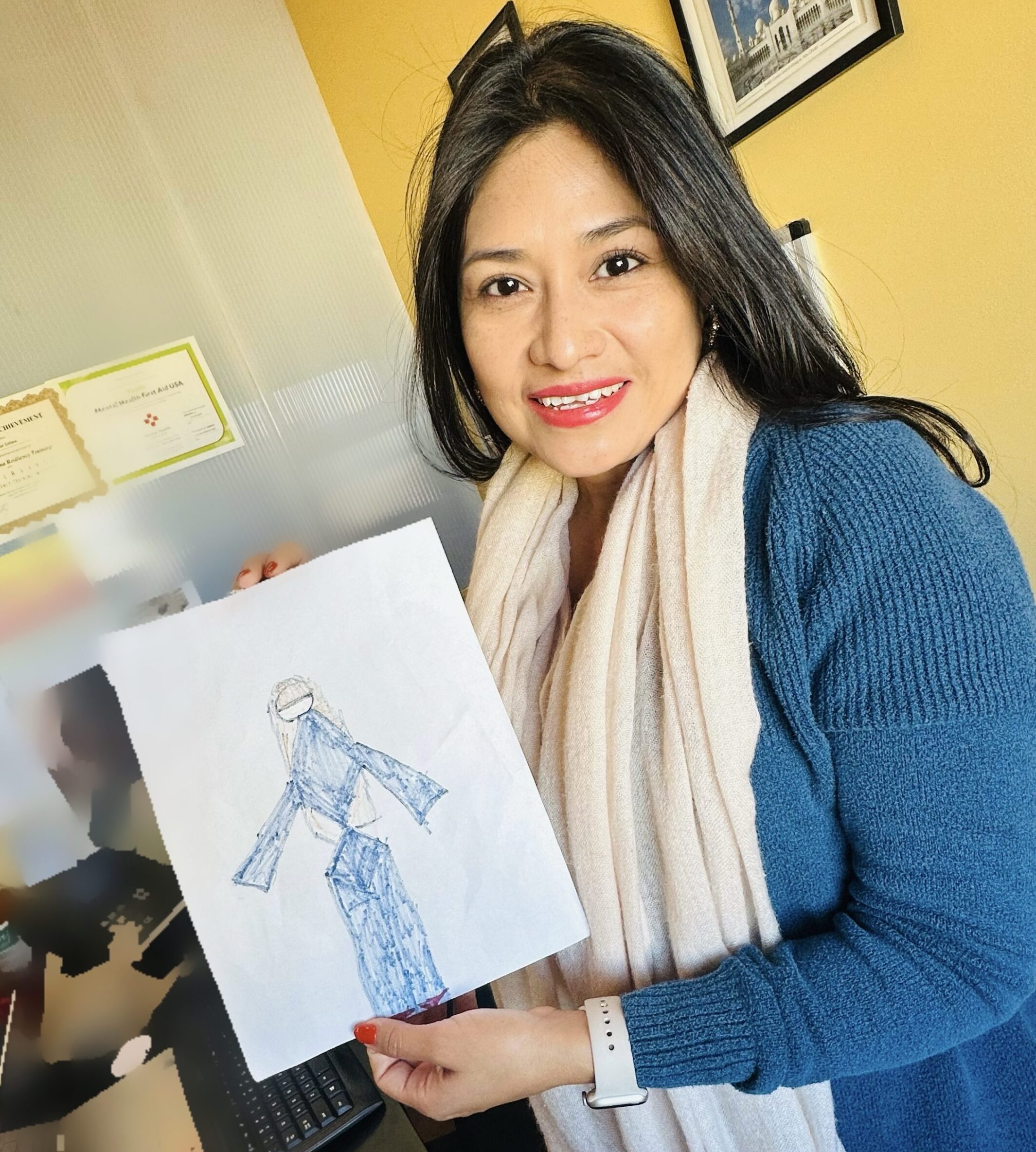 In that small act, Aide saw the true meaning of her work. This little girl wasn’t just drawing a person — she was capturing a moment of safety, kindness, and hope.